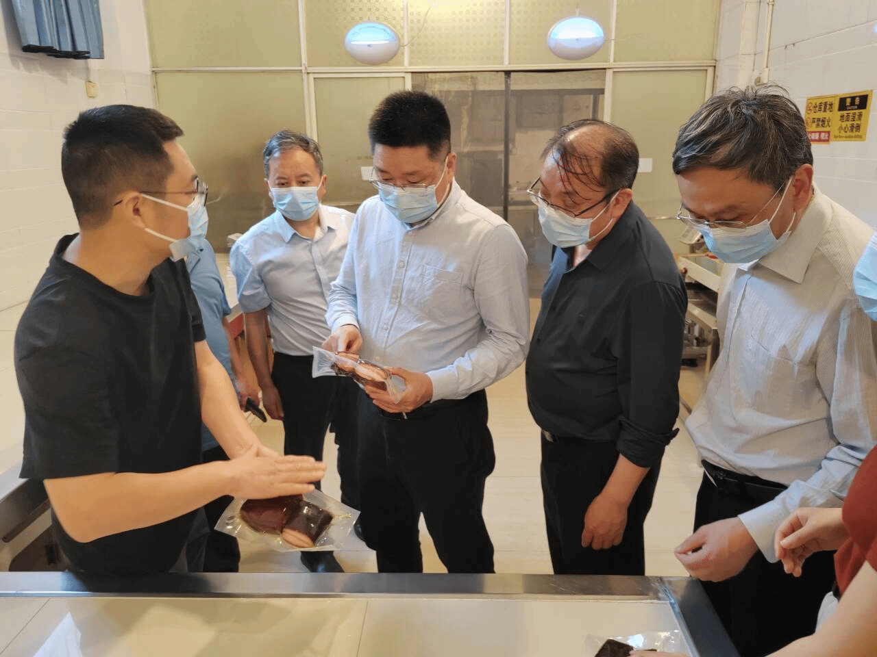 宜宾郭满堂生态食品有限公司董事长郭志强带领一行人员在生产车间近距离观察腊制品的原料处理、腌制加工、包装储存等环节,围绕食品加工过程中的质量控制、风味优化等问题与企业技术人员进行了充分沟通,为后续双方在食品加工领域的合作奠定基础。