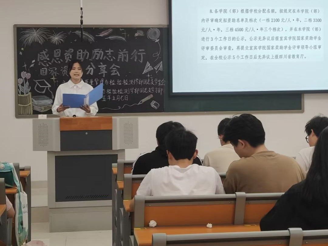 为深化落实国家资助育人政策,扎实推进感恩资助宣传教育活动,充分发挥优秀学子榜样引领作用,质量管理与检验检测学部于5月7日晚在临港校区二期三号楼213教室成功举办“感恩资助·励志前行”国家资助政策宣讲暨优秀学子励志分享会。分享会邀请了3位获得2024年国家资助的2025届优秀学子进行分享,分别是考取西南科技大学研究生、国家助学金与国家奖学金获得者周鹏,考取四川农业大学研究生、国家励志奖学金获得者孙牟瑶,考取四川师范大学研究生、国家助学金获得者刘梓淇。