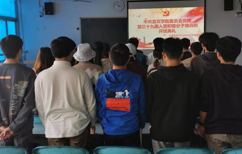 典礼在铿锵有力的《国际歌》声中拉开序幕。全体起立,齐唱雄浑激昂的《国际歌》,新学员们精神抖擞,眼神中尽显对党的憧憬和向往。