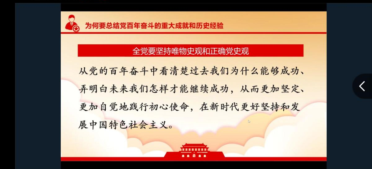 大会围绕党的重大成就和历史经验展开,对“三个需要”做出了精确的诠释,强调全党要坚持唯物史观和正确党史观,从而更加坚定、更加自觉地践行初心使命,在新时代更好地坚持和发展中国特色社会主义。此外,主持人带领大家了解和学习了“四个伟大成就”的主要内容,以及在每一个时期党面对的主要任务,同学们表示对党过去的历史有了更加全面的了解和更加深刻的认识。
