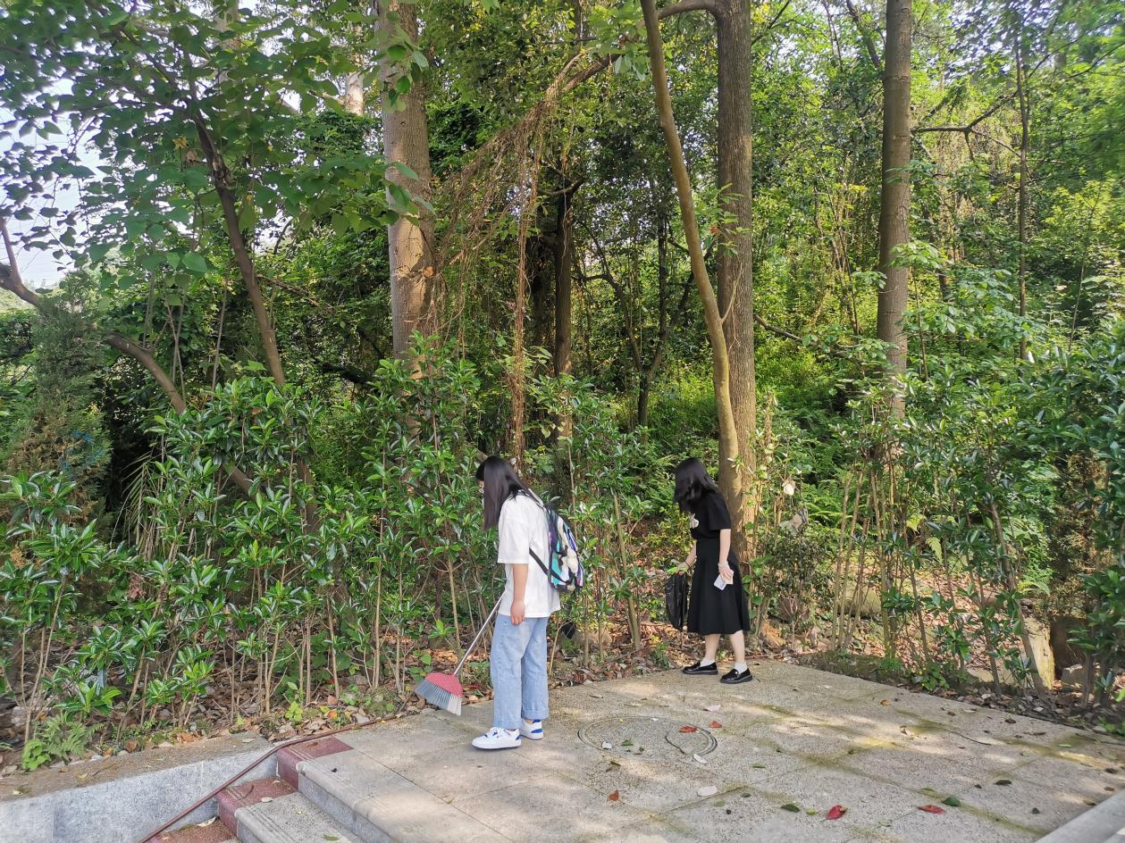 随后,全体人员开展义工活动,打扫烈士陵园。此次活动加深了学生对青年使命与担当的认识,在社会实践中感悟中国共产党的百年历史,激发学生对中国革命史的认同感,树立正确的价值观、人生观和世界观。