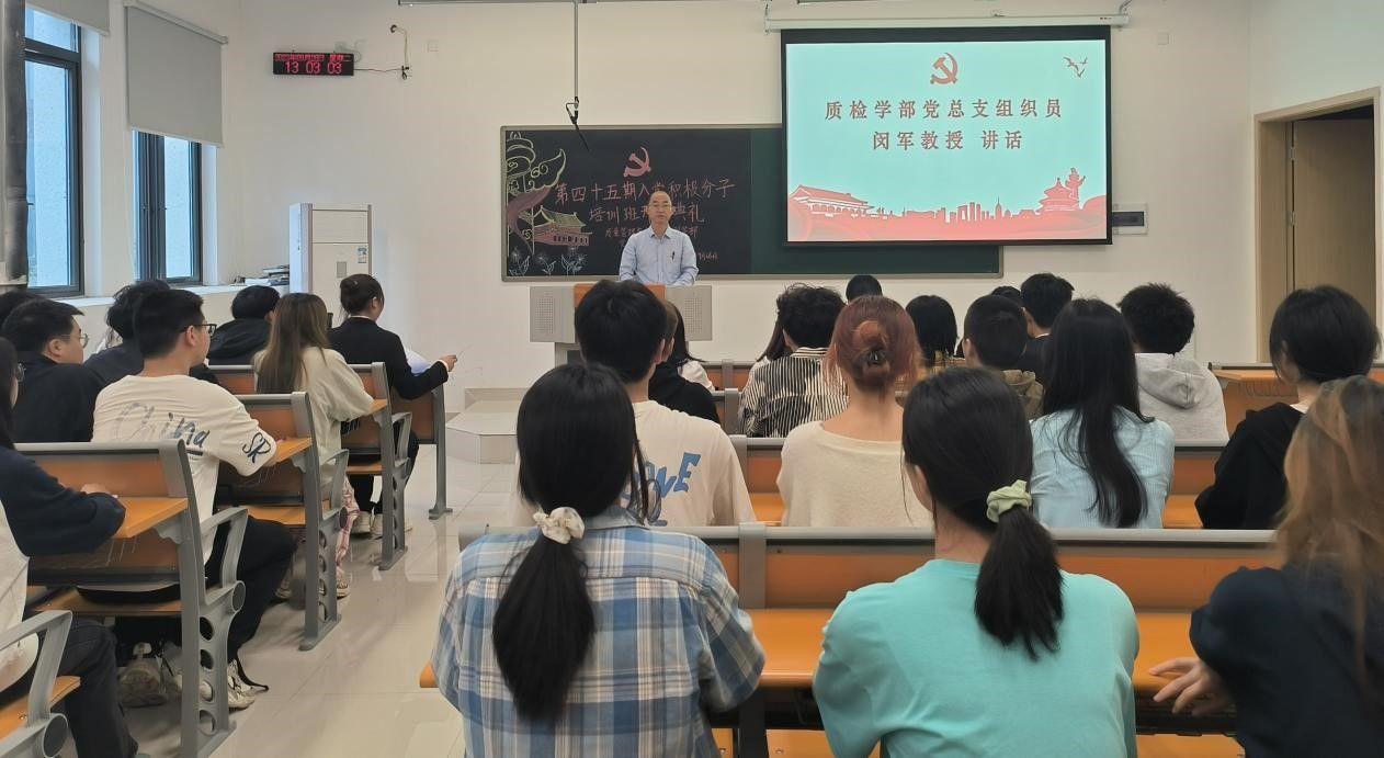 为了加强党员队伍建设,抓好入党积极分子的选拔和培养,把政治素质好、组织纪律强的师生吸纳到入党积极分子的队伍中来。9月26日,质量管理与检验检测学部党总支在临港校区二期二号楼218教室举行第45期入党积极分子培训班开班典礼。学部正处级组织员闵军教授、党校班主任文梦玲、学生党支部书记罗祥敏、第四十四期入党积极分子优秀学员代表及第四十五期入党积极分子全体学员参会。