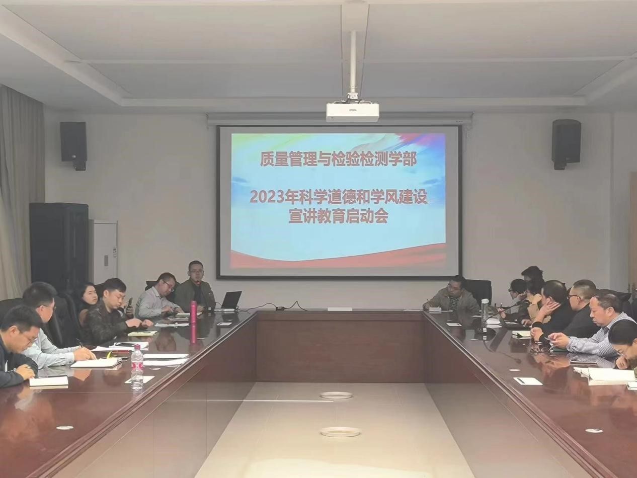 为深入学习贯彻习近平新时代中国特色社会主义思想和党的二十大精神,全面落实习近平总书记关于弘扬科学家精神和加强学风建设工作重要指示精神,切实加强科学道德和学风建设,积极营造良好科研生态和舆论氛围,加强师生学术道德和学术规范能力。2023年11月8日,质量管理与检验检测学部举办了科学道德和学风建设宣讲教育启动会,质检学部全体教职员工参会。