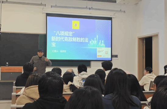 吴开祥教授从三个核心维度对中央八项规定进行深入阐释。一是系统梳理中央八项规定的出台背景与核心要义,明确其作为全面从严治党重要抓手的历史意义与现实价值。二是详细解读中央八项规定的具体要求,结合高校实际案例说明作风建设的实践路径。三是重点探讨青年学子践行中央八项规定的时代责任,强调要将优良作风融入日常学习生活,锤炼求真务实、严于律己的个人品格。
