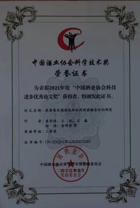据悉,本届“中国酒业协会科学技术奖(论文类)”获奖共有42项作品,其中一等奖6项、二等奖14项、三等奖22项,投稿作品经专家严格评审,学校袁华伟老师论文最终斩获三等奖。