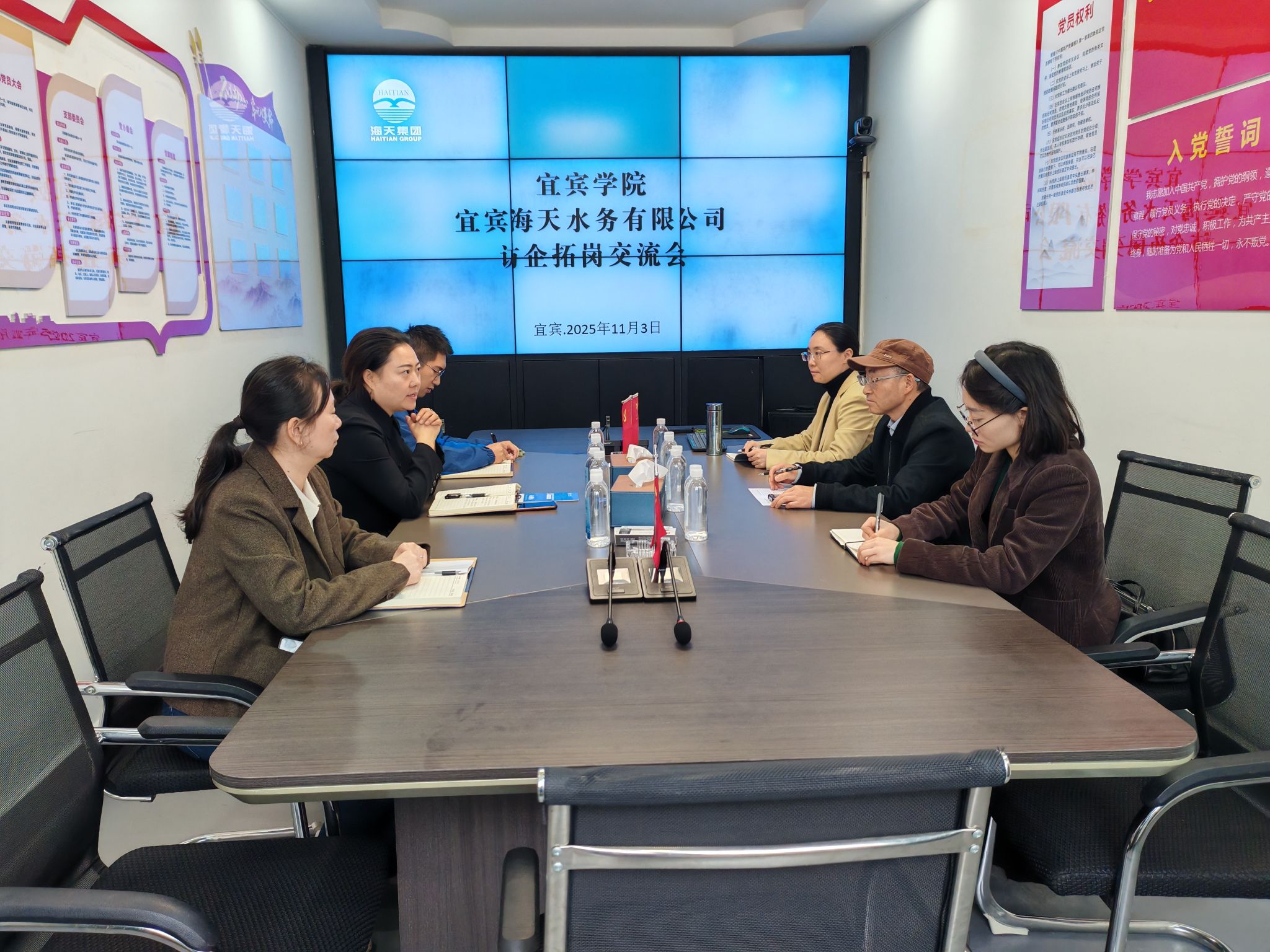 为深化校企合作,精准对接用人需求。11月3日,学部组织员闵军教授、环境工程专业教研室主任曾韵敏、专任老师黄帆赴宜宾海天水务有限公司进行访企拓岗。公司总经理魏燕、总经理助理杨乾龙和财务部副经理邓代平出席本次就业工作推进交流会。