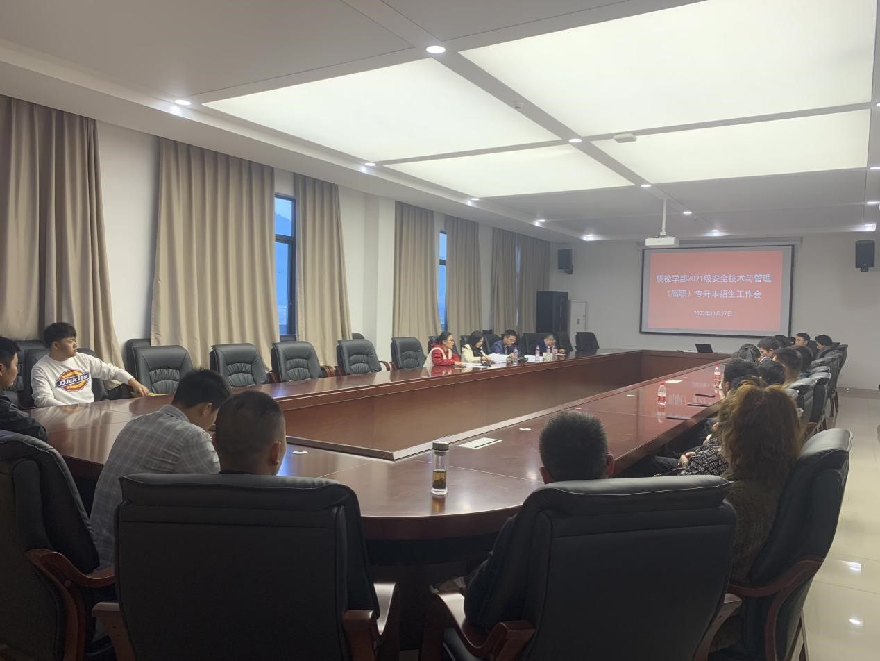 为了进一步做好四川省2024年普通高校专升本招生工作,同时加强2021级安全技术与管理(高职)学生学风建设,11月27日,质检学部召开2021级安全技术与管理(高职)专升本招生工作会及学风建设会。学部副部长(负责工作)朱盛艳、分管教学副部长赵品瑶、教学办副主任苏俞真、2021级安全技术与管理(高职)班主任蔡华林及该专业全体同学参加会议,会议由学部分管教学副部长赵品瑶主持。