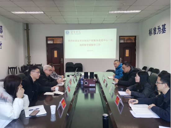 日前,宜宾市知识产权服务促进中心主任曾玉廷一行到宜宾学院质检学部开展工作调研,质量管理与检验检测学部副部长(负责工作)朱盛艳陪同调研。
