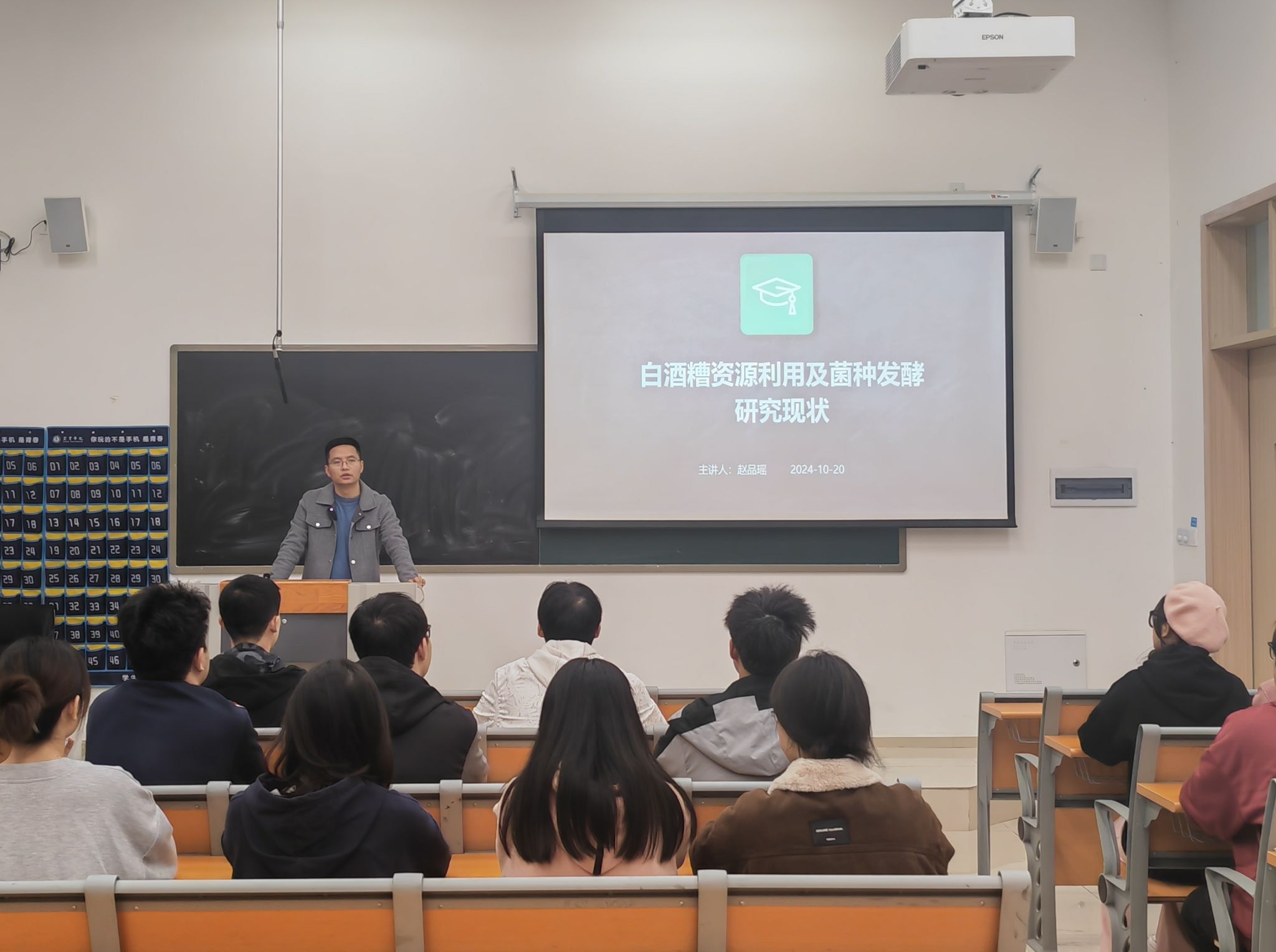 10月20日,一场以“白酒糟资源利用及菌种发酵研究现状”为主题的学术讲座在临港校区二期公共教学楼成功举办。此次讲座由质检学部赵品瑶副教授主讲,吸引了食品质量与安全专业的20余名学生参加。