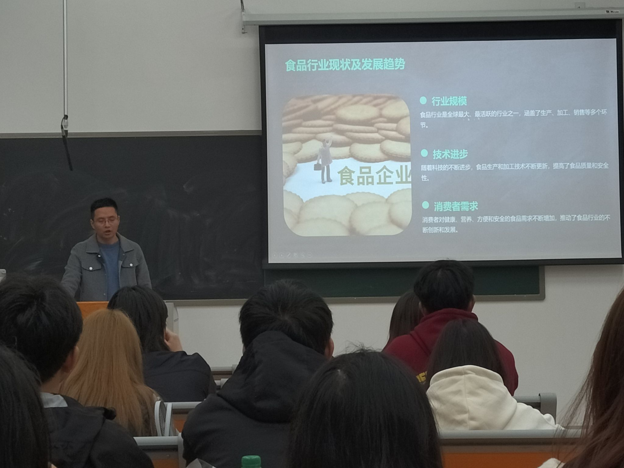 在讲座中,赵品瑶首先介绍了食品行业的概况与就业前景。他指出,随着消费者对健康、营养、方便和安全食品需求的不断增加,食品行业正不断创新和发展,对食品质量与安全专业人才的需求日益迫切。赵品瑶提到,食品加工企业、餐饮企业、食品监管机构等各个领域都急需具备化学、生物学、食品科学、营养学等多方面知识和技能的专业人才。