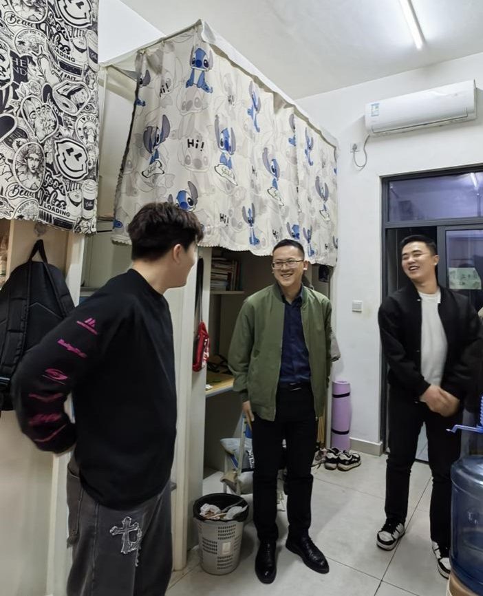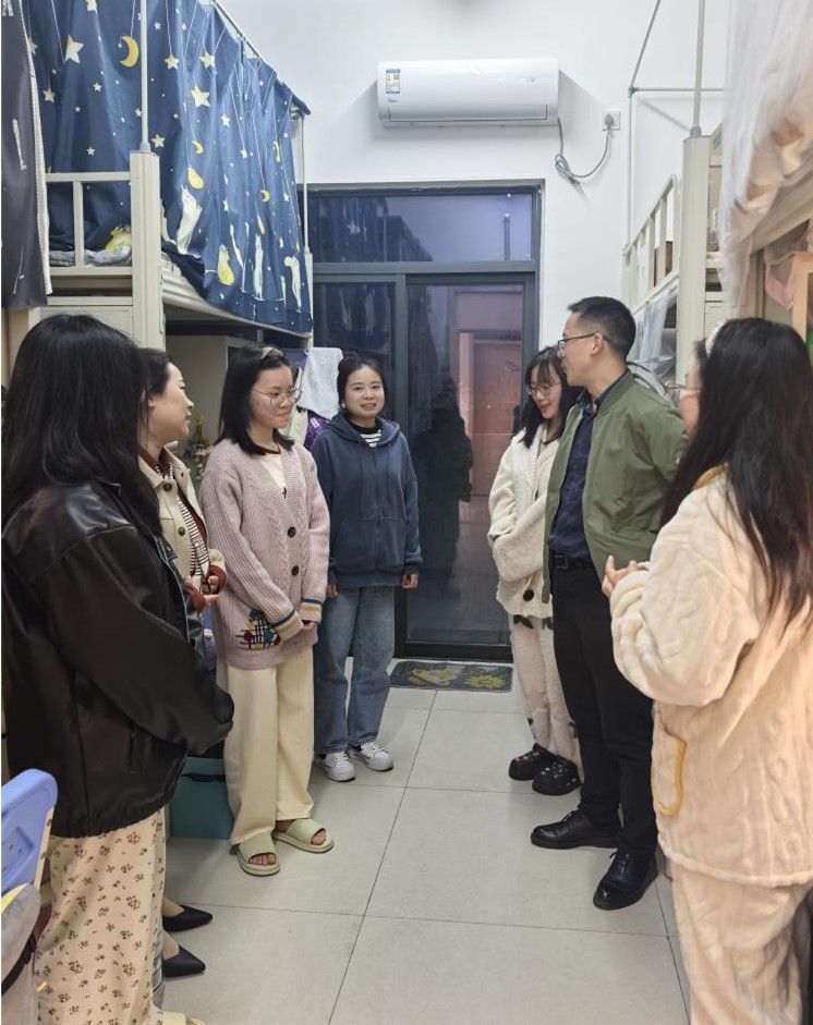 查寝过程中,王鹏积极与学生交流互动,深入了解学生的思想和学习状况,亲切询问同学们近期的学习进展、课程困难以及生活困扰,敏锐捕捉学生的思想动态,及时给予正向引导,将思想政治教育融入日常关怀之中。期间特别关心大四学生的学业发展与就业准备情况,建议在论文写作方面要与指导教师进行定期沟通,确保论文质量;在就业准备方面要主动把握就业机会,积极参加各类招聘会和面试。