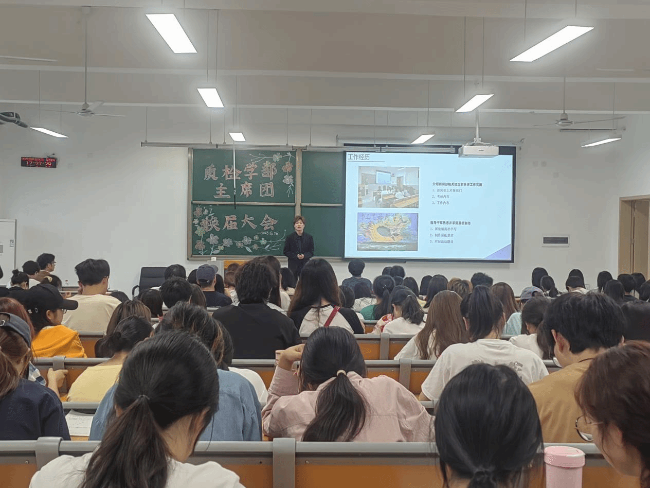 5月26日下午,质量管理与检验检测学部第五届团总支学生会换届大会在宜宾学院临港校区二期2号楼208举行,学部党总支书记聂多均、学生工作办公室副主任罗祥敏、专职辅导员黄小纤以及第四届团总支学生主席团成员、各部门代表、学生代表及竞聘人员参加了此次大会。