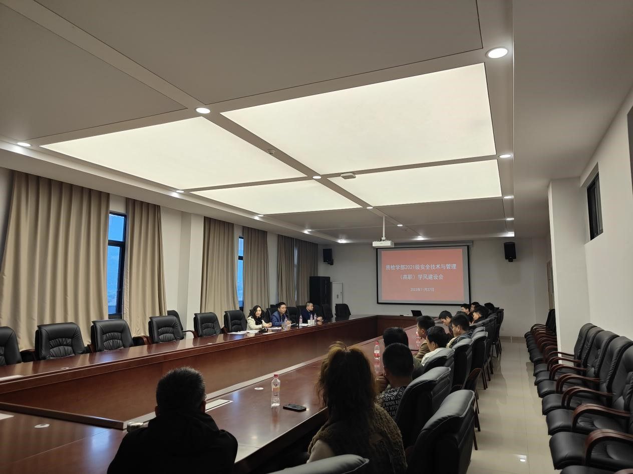 为了进一步做好四川省2024年普通高校专升本招生工作,同时加强2021级安全技术与管理(高职)学生学风建设,11月27日,质检学部召开2021级安全技术与管理(高职)专升本招生工作会及学风建设会。学部副部长(负责工作)朱盛艳、分管教学副部长赵品瑶、教学办副主任苏俞真、2021级安全技术与管理(高职)班主任蔡华林及该专业全体同学参加会议,会议由学部分管教学副部长赵品瑶主持。