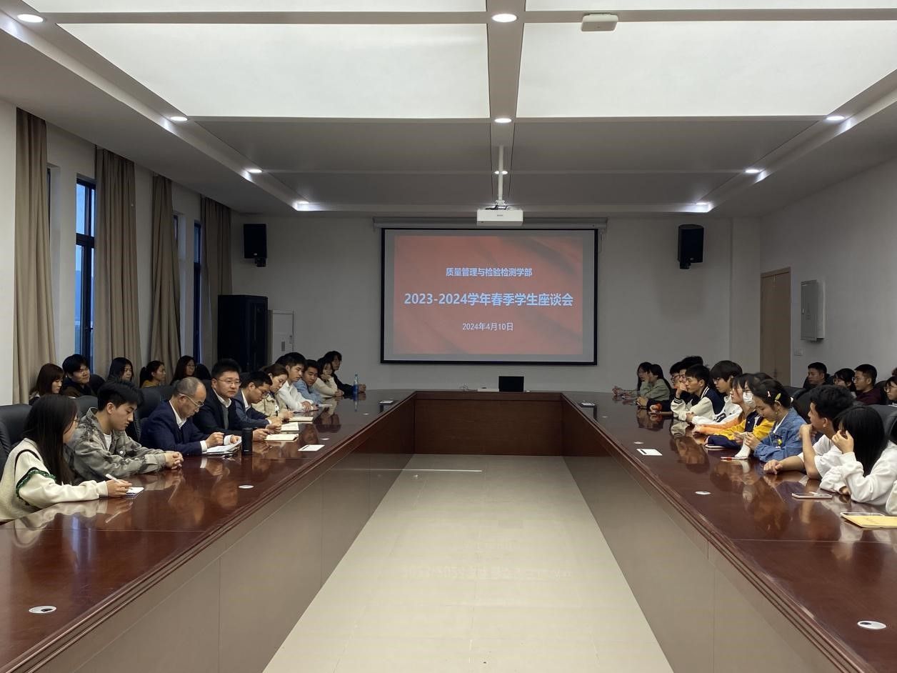 为进一步了解学生的学习和生活状况,倾听学生诉求,及时发现并解决教、学、管中存在的问题,促进学风建设,营造良好的教学氛围和学习风气。4月10日下午,质量管理与检验检测学部在港校区二期三号楼405会议室召开2023-2024学年春季学生座谈会。学部党总支书记聂多均、副部长赵品瑶、正处级组织员闵军、学生工作办公室副主任罗祥敏及专职辅导员、学生代表参加座谈。座谈会由聂多均主持。