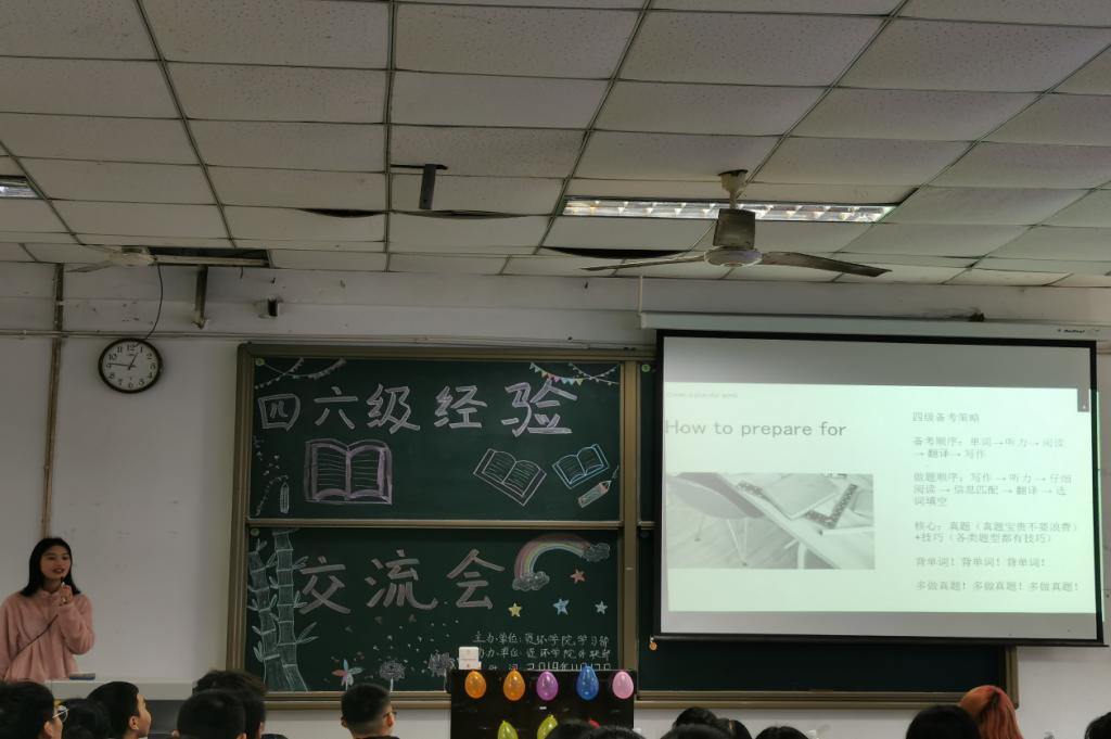 2019年11月13日12:40,质检学部在一教201举行质检“四六级经验交流会”活动。