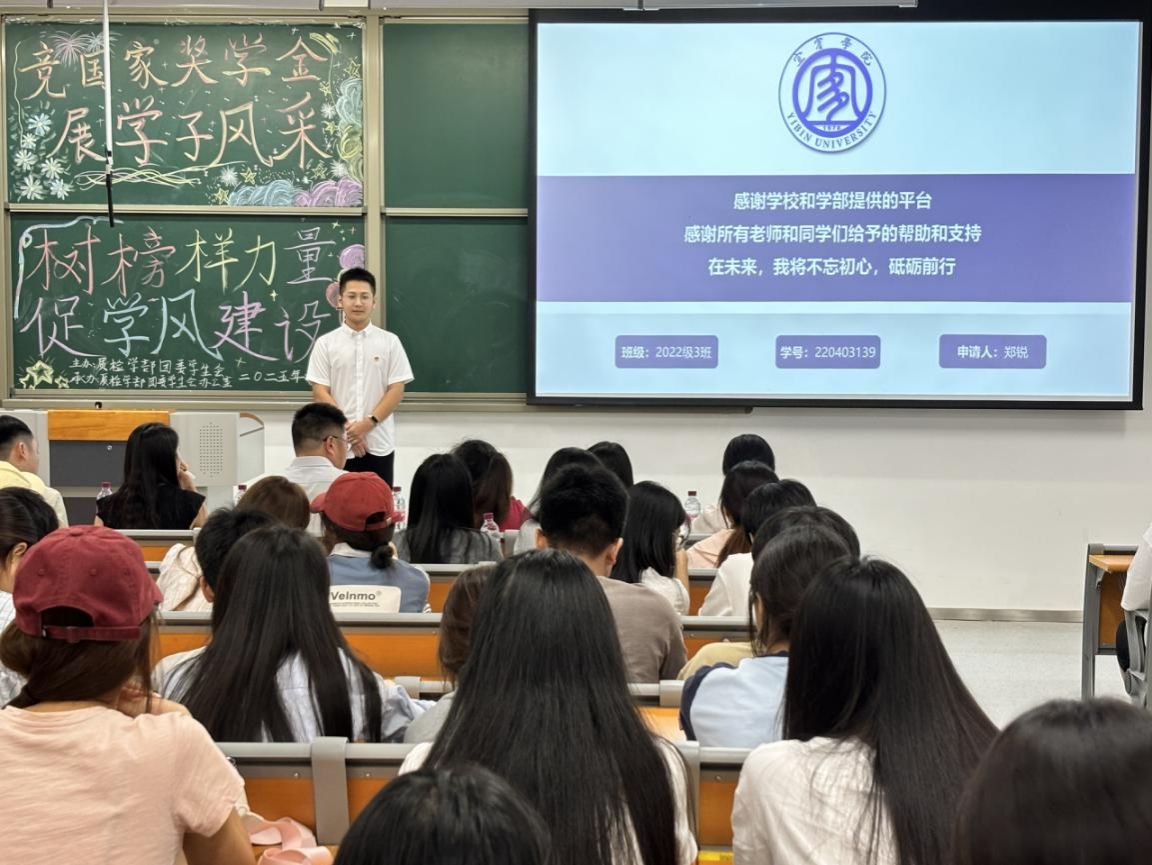 为落实学生德、智、体、美、劳全面发展目标,充分发挥优秀学生的榜样示范和引领作用。10月10日晚,学部在临港校区二期三号楼208教室开展2024-2025学年国家奖学金答辩会。学部党委书记聂多均、学工办主任罗祥敏、学工办副主任黄小纤、专任教师韦笑、全体专职辅导员以及团委学生会部分干部担任评委,学部100多名学生到场观摩学习。