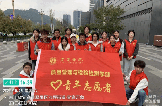 作为新时代青年,传承爱国精神、厚植家国情怀是我们的光荣使命。为弘扬爱国主义、展现青年担当,学部青年志愿者协会于2025年10月25日下午,在宜宾市万象汇商场门口举办了以“史海寻红迹,今朝颂国情”为主题的校外爱国主义宣传实践活动。