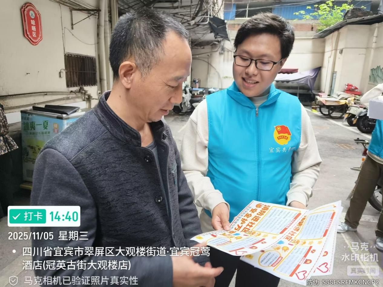 当前部分居民对消防知识的掌握仍停留在“了解概念、不会实操”的阶段,遇到火灾容易慌乱、应对不当。为切实提升社区居民的应急避险与自救互救能力,筑牢社区消防安全防线,2025年11月5日下午,学部青年志愿者协会组织志愿者前往宜宾市翠屏区冠英社区,开展了以“消防进社区,安全护万家”为主题的校外公益服务和宣传实践活动。
