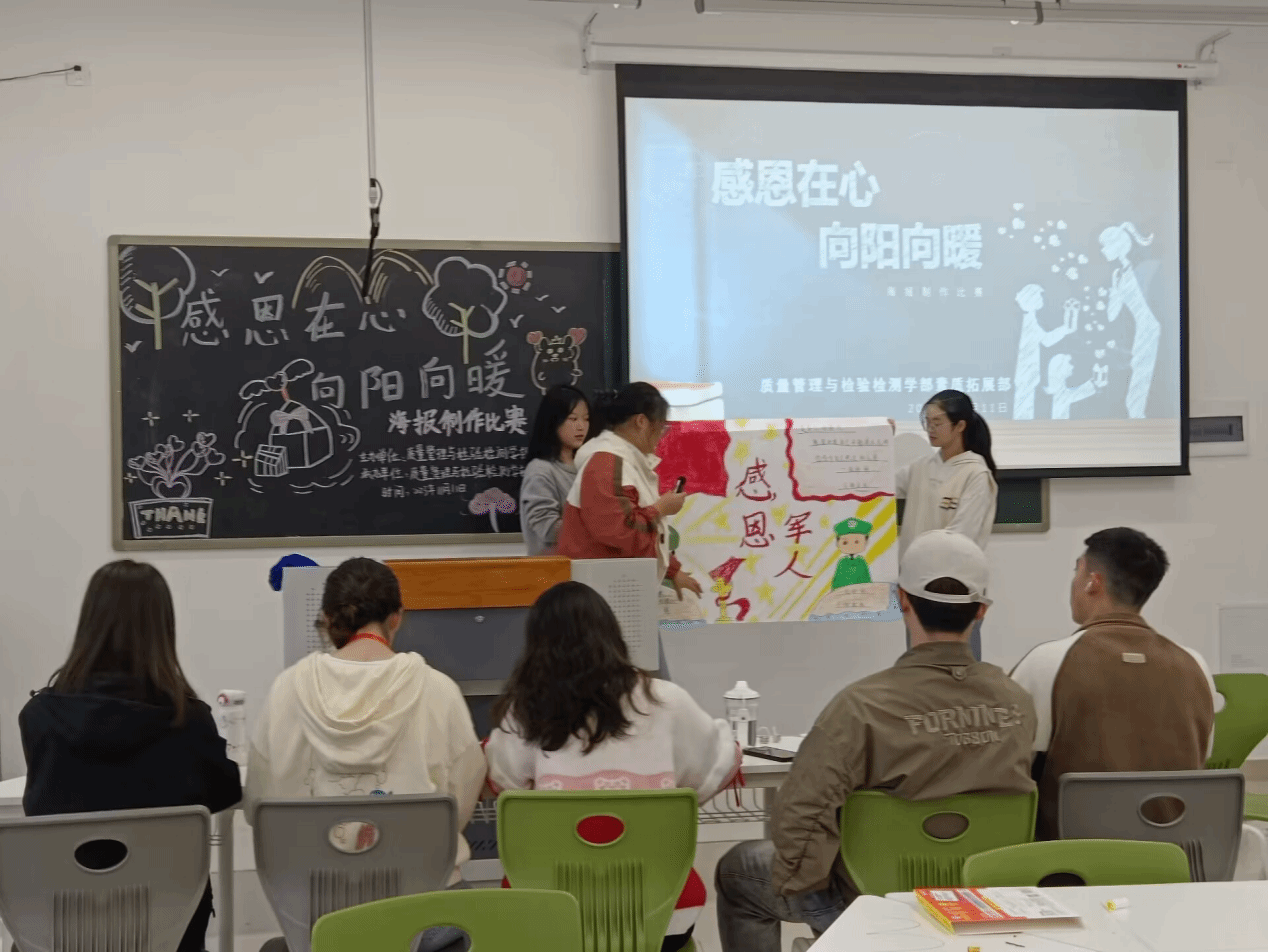 为了培养同学们的感恩意识,在心中加强感恩情感,使同学们懂得人与人之间需要互帮互助,在接受别人的付出的同时要懂得感恩。质量管理与检验检测学部团总支学生会于11月11日下午在质检大楼205教室举办以“感恩在心、向阳向暖”为主题的海报制作大赛。