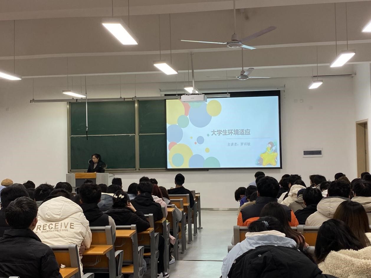 为了帮助大一新生尽快适应大学生活环境,提高适应能力,12月24日晚,质量管理与检验检测学部学生工作办公室副主任罗祥敏在临港校区二期二号楼208教室开展大学生心理健康教育讲座。质检学部专职辅导员汪洋和学部180多名学生参加讲座。