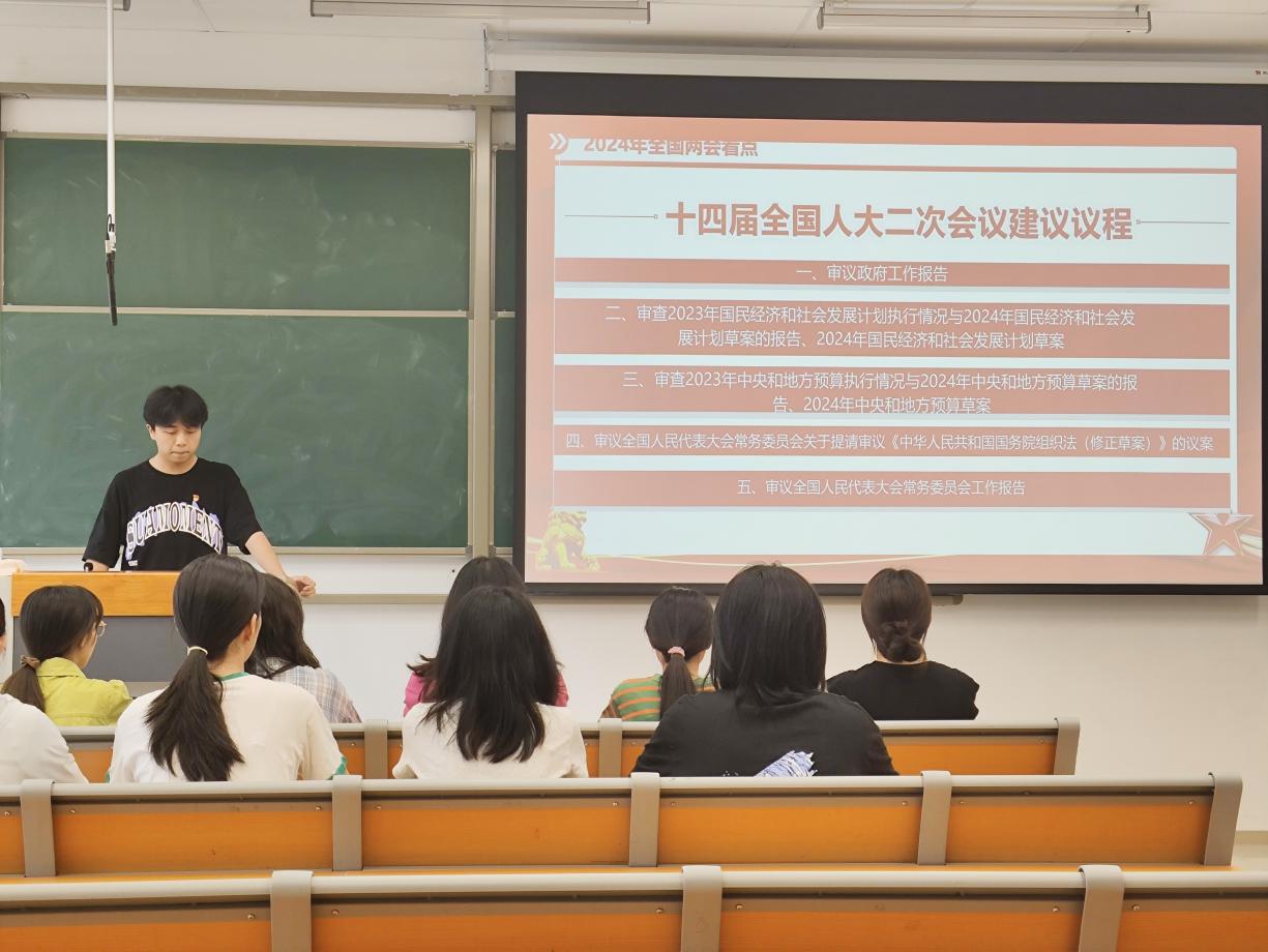最后,学生党员工作站指导老师黄小纤总结发言,希望与会成员的党性修养与党性意识能够通过此次活动得到增强与提高,从“两会”精神中汲取奋进前行的力量,以党员标准严格要求自己,学以致用,身体力行,勤奋学习,为实现自身的目标而不断努力奋斗。