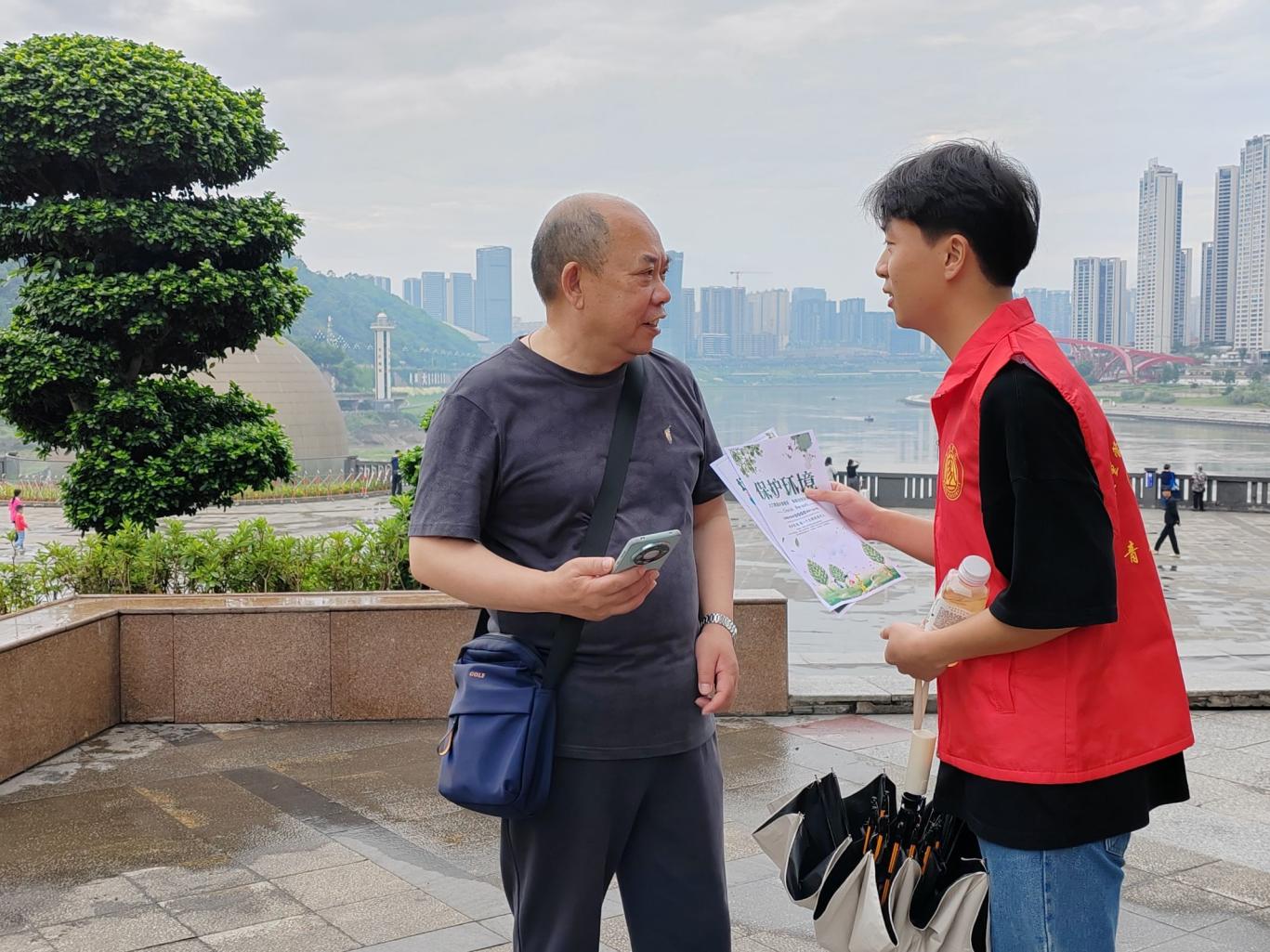 在合江门,成员们分工协作,通过发放海报向市民们宣传绿色生活理念,呼吁大家爱护环境,积极保护绿水青山。通过成员们的宣传讲解,不少市民们表示环境保护十分重要,在今后的生活中将以自己实际行动践行环保观念,让江畔更加美丽,让生活更加美好。