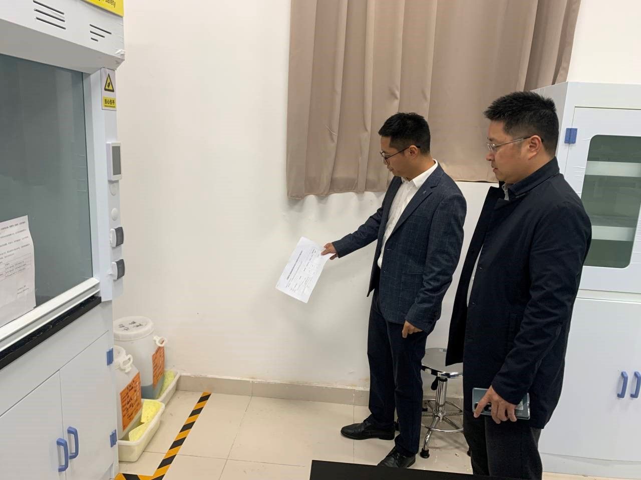 11月1日质检学部党总支书记聂多均、副部长赵品瑶及实验室相关管理人员组成实验室安全检查小组,按照《关于开展加强高校实验室安全专项行动的通知》、《教育部办公厅关于组织开展 2023年度高等学校实验室安全检查工作的通知》和《四川省教育厅关于组织开展 2023 年度高等学校实验室安全检查工作的通知》要求,进一步提高学生的实验室安全知识水平和安全意识,防范杜绝实验室发生的安全事故,保障广大师生人身安全和校园稳定,确保实验室安全隐患整改到位,水、电关闭到位,物品摆放整洁。