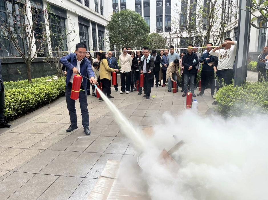演练开始前,实验与创新中心副主任刘虎华对全体教师进行了火灾疏散逃生和灭火器使用要点及相关知识的培训,并详细介绍了本次疏散逃生和灭火器灭火演练的安排。演练开始后,警报拉响,引导人员迅速到达现场,指挥教师有序疏散。撤离过程中,教师们严格按照“弯腰低头、湿毛巾捂口鼻”的火场逃生要领快速撤离到指定地点。应急疏散演练结束后,师生集合至灭火器灭火演练场地,由经过专业培训并在四川省安全与应急创新实践大赛、重庆市安全与应急技能大赛中获得过一等奖的邵羿志同学为大家讲解并演示了灭火器的使用方法和注意事项。随后,老师们依次排队进行灭火器的使用,掌握灭火器灭火技能。通过本次演练,老师们掌握了“一拔二拉三瞄四压”的干粉灭火器使用技能,提高了面对紧急情况处置能力。